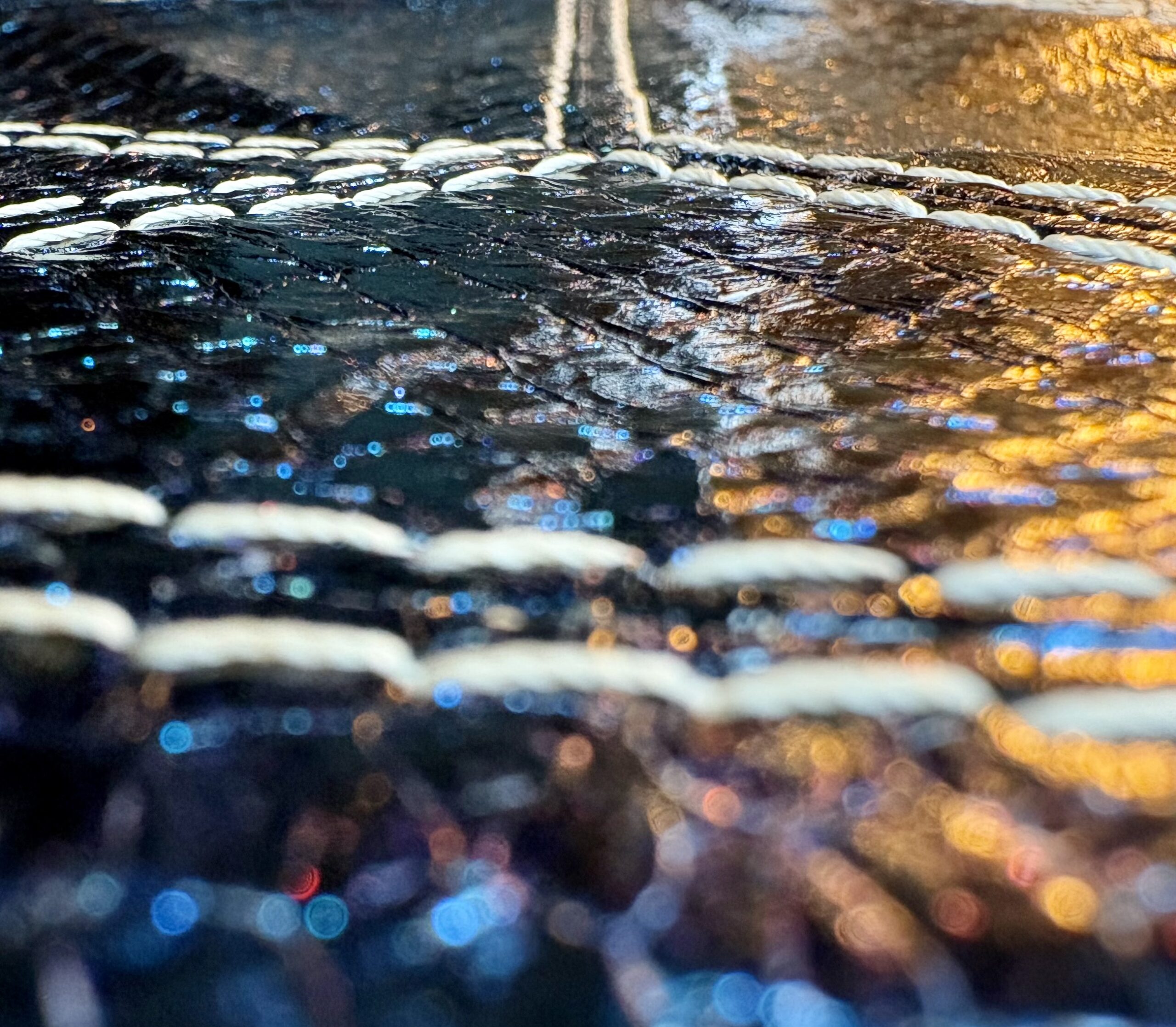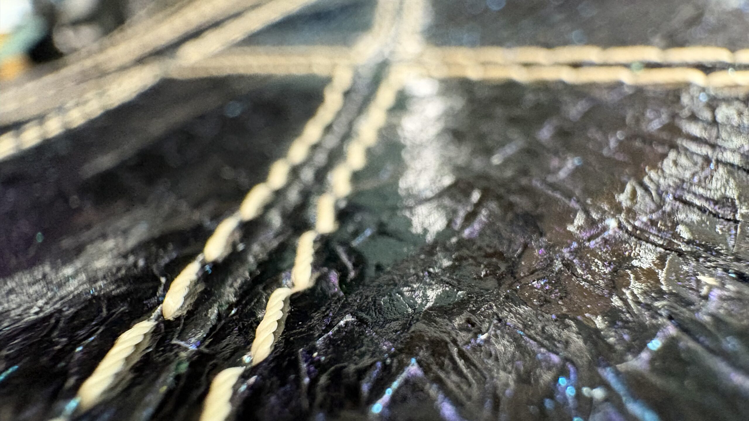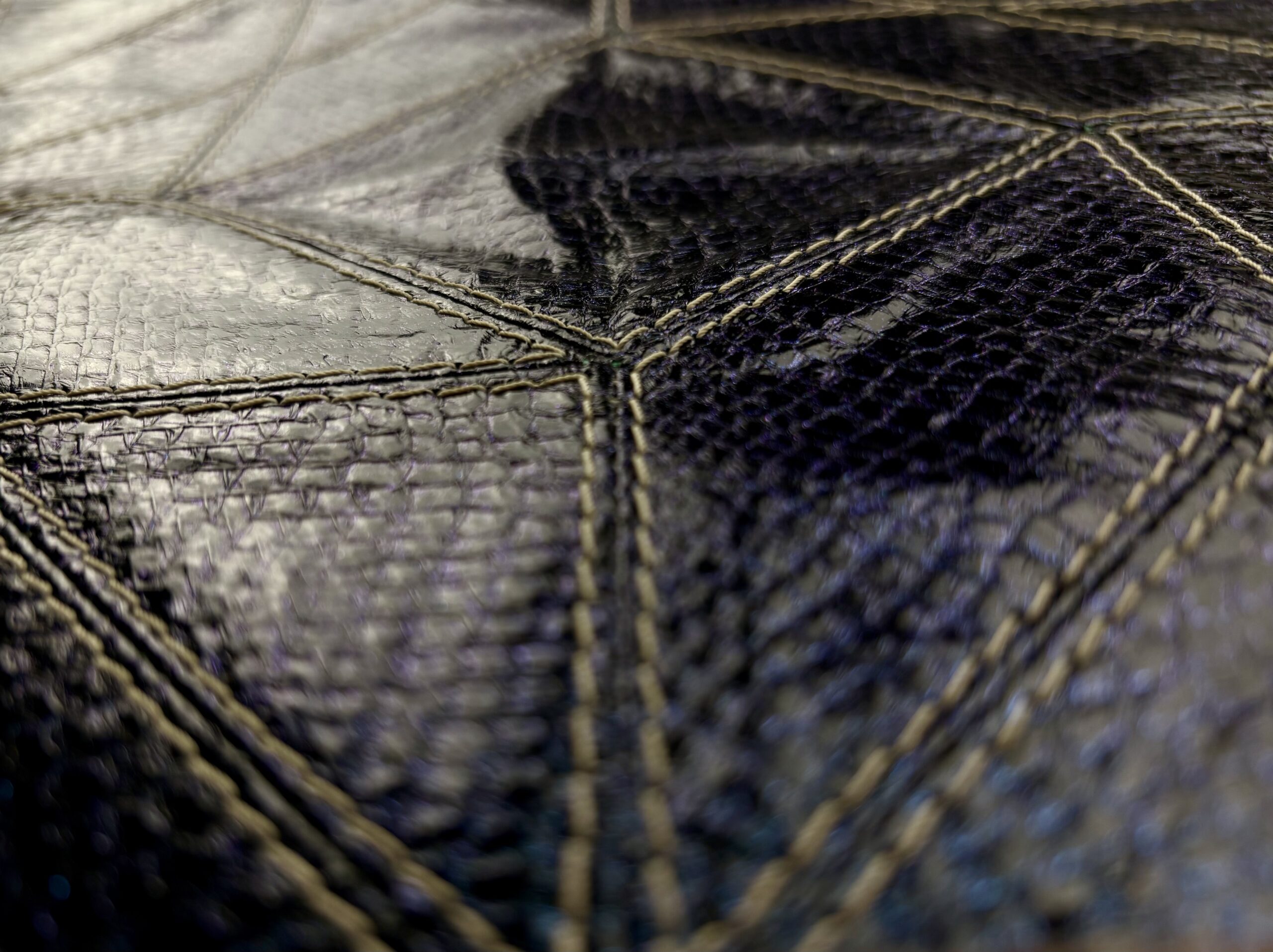 • Assemblage de cuir marin géométrique réalisé sur mesure.