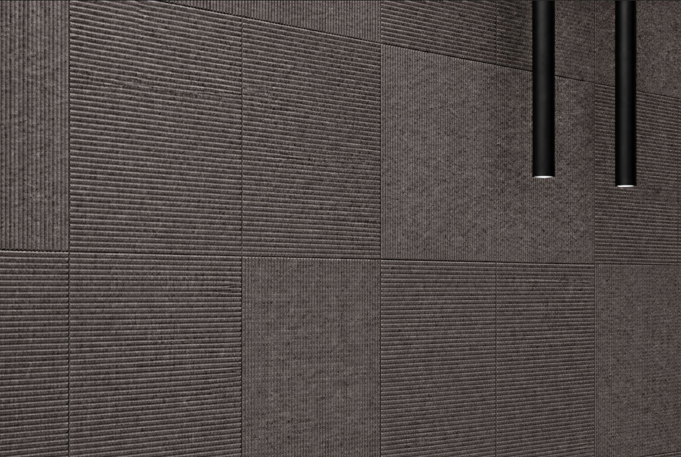 La revêtement mural PURIFY GREY en liège se présente sous forme de carreau individuel au relief discret .